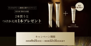 エリクシール リンクルクリーム(S15g/L22g/レフィル22g)を施策期間中2本ご購入ごとに、リンクルクリームつけかえ用特製Sサイズ(15g)を進呈‼